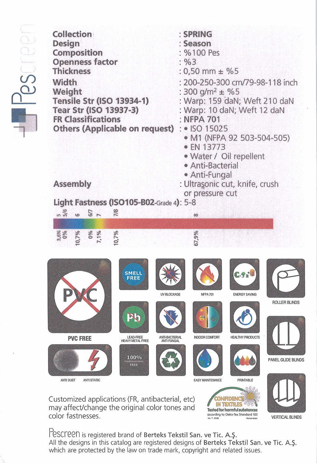 土耳其Pescreen進口無毒100%Ployester(聚酯纖維),不含PVC成份(NONE PVC),防塵蹣,開孔率1%~5%,適合居家,辦公室空間使用.