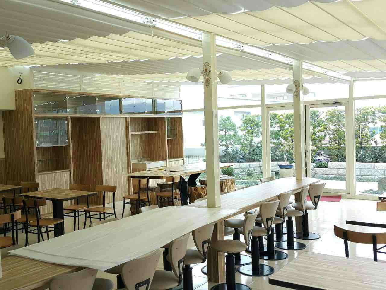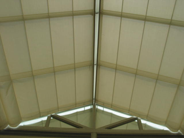 許多室內裝修中,為了大面積的採光及放大視野,常會設計天井或是玻璃屋,不過陽光直曬時室溫也同時飆升,此時就相當需要隔熱遮陽的設備,比起隔熱紙單調無變化及調光薄膜高價,天窗即是最佳的設備,不管需要採光還是遮陽,天窗都可隨心所欲的控制,只要事前完整天窗收內採光時幾乎不占視野空間。